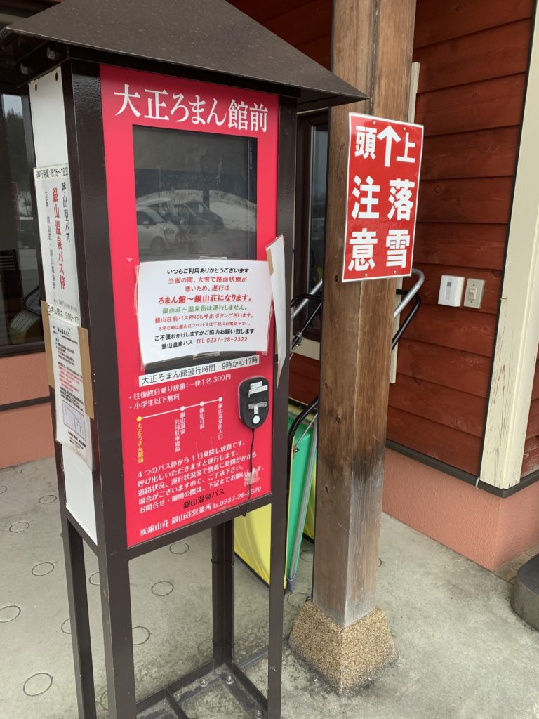 ※元気な方なら大正ろまん館から歩けなくもないですが、歩道は雪かきされておらず、車道も危険なので、バスを利用するのがベストです。(公式HPではこの区間を歩かせる旅行会社へ注意がされているほど)